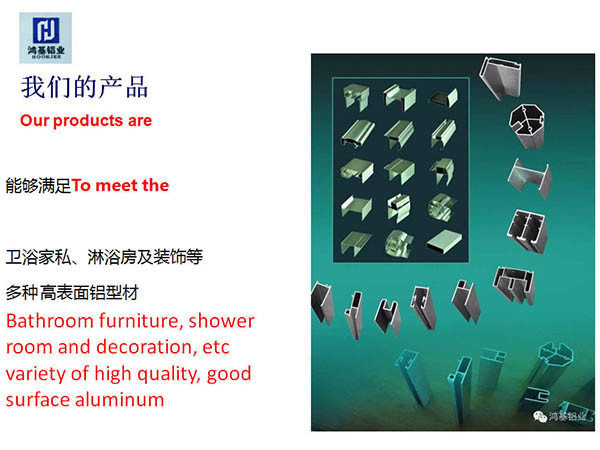 公司主要生產(chǎn)高表面的淋浴房11大系列20000多個(gè)規(guī)格鋁合金型材產(chǎn)品,可以生產(chǎn)如亮銀、拉絲銀、啞銀、砂銀、不銹鋼色、本色、噴涂等多種金屬表面效果的鋁材產(chǎn)品;此外各種溫控毛巾架、晾衣架等衛(wèi)浴裝飾......